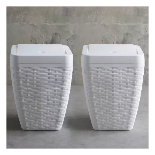 바스클립 라탄 다이아몬드 플립형 쓰레기통 7L 2개 화이트