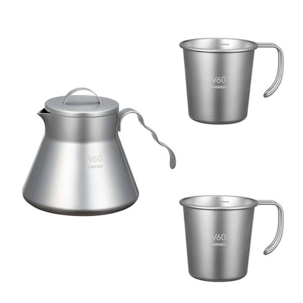 하리오 아웃도어 메탈 커피 서버 & 컵 2P
